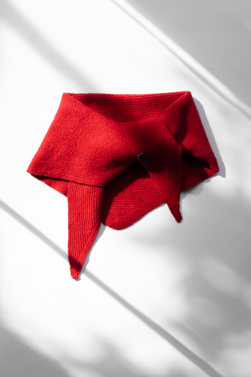 Gebreide mini sjaal in triangle vorm.